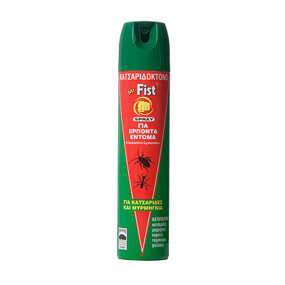 Το MR.FIST κατσαριδκτόνο spray καταπολεμά τα βαδιστικά έντομα όπως κατσαρίδες, μυρμήγκια, τσιμπούρια, κοριούς, ψαράκια, ψύλλους, σκόρους, αράχνες. Περιέχει δραστικά συστατικά που βοηθούν στην άμεση καταπολέμηση του προβλήματος. Χρησιμοποιείστε τα εντομοκτόνα με ασφαλή τρόπο. Να διαβάζετε πάντα την ετικέτα και τις πληροφορίες για το προϊόν πριν από τη χρήση.