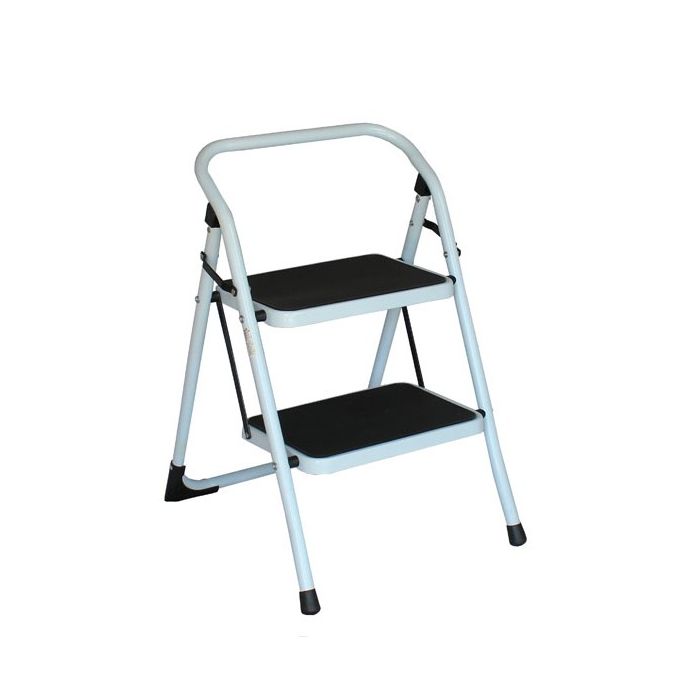 Σκαλοσκαμπό κατασκευασμένο από βαμμένο μέταλλο μεγάλης αντοχής στο χρόνο. Διαθέτει δύο σκαλιά, ελαστικά πατάκια στη βάση των σκαλιών και στα πόδια της κατασκευής για μεγαλύτερη προστασία. Εύκολο στη μετακίνηση και στην αποθήκευση όταν δεν χρησιμοποιείται.